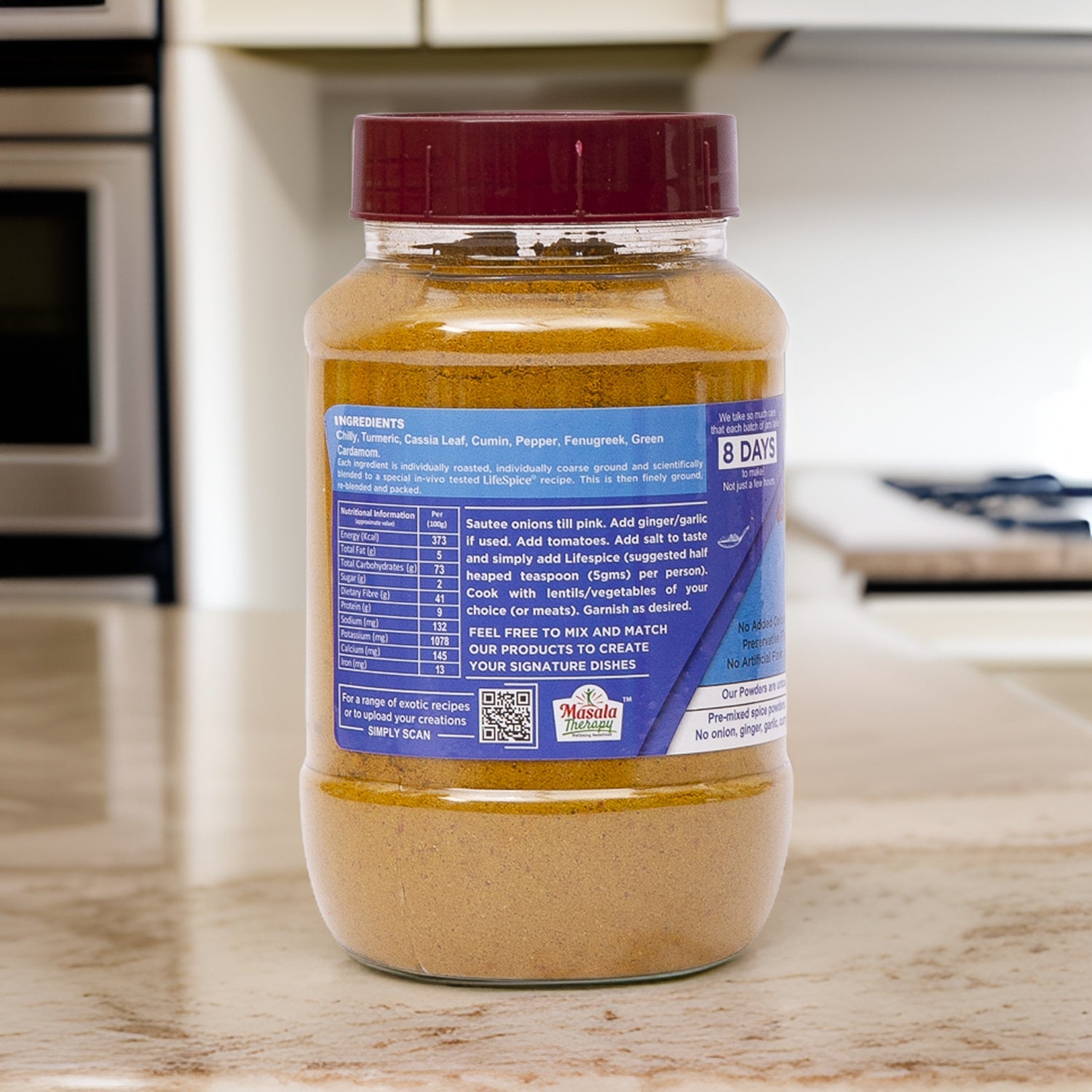 A Signature mix of original spices in a special formulation that has been tested in research labs and proven to improve management of glucose and lipid (helps cope with Diabetes / cholesterol ). Can be used as any other garam masala. Especially enhances flavour of Dals, lentils, both in vegetarian and non-vegetarian rendering.